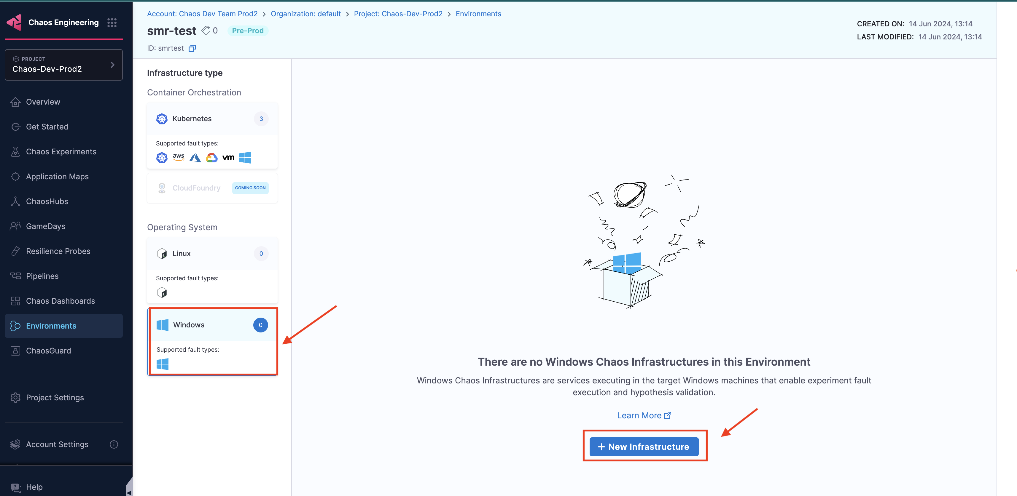 Select the Infrastructure Type as Windows and click New Infrastructure