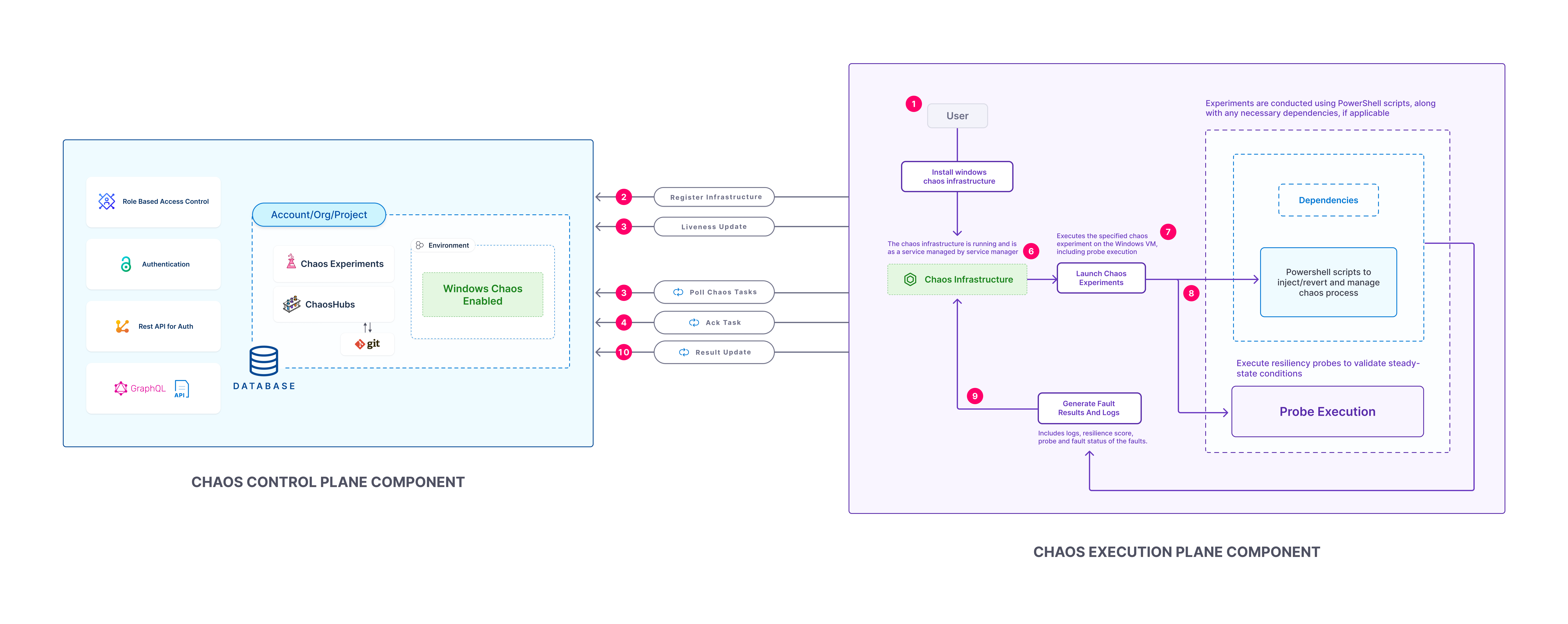 admin user: User account used to execute commands on the terminal to install and manage the Windows chaos infrastructure. Administrator privileges are optional for installation. By default, the logs are stored at