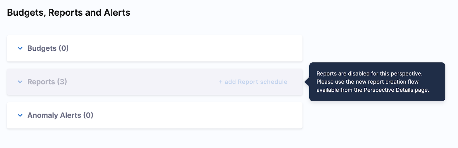 - When the Dynamic Perspective Reports feature flag is enabled for your account, CCM will disable the legacy report creation method from the Perspective Creation workflow.