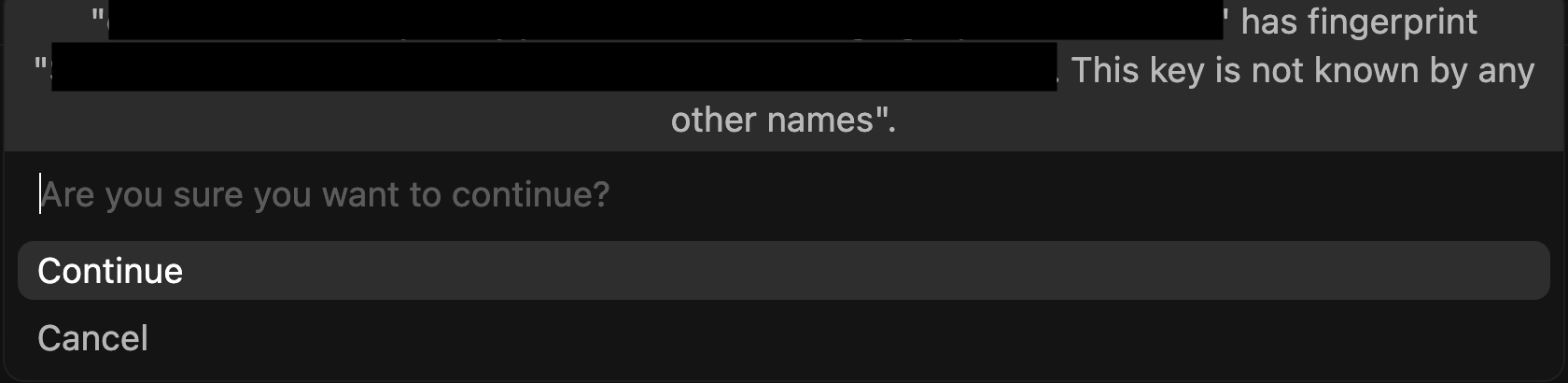 You'll be required to confirm the given SSH key can be used to connect, type yes in the text box and click Enter.