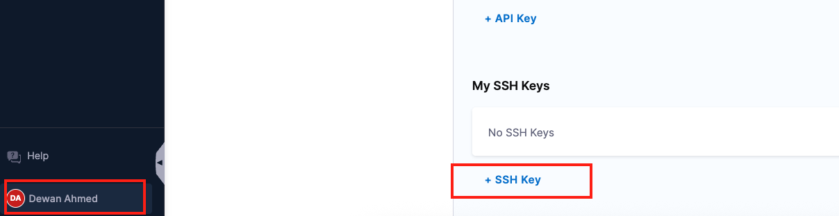 Select + SSH Key.