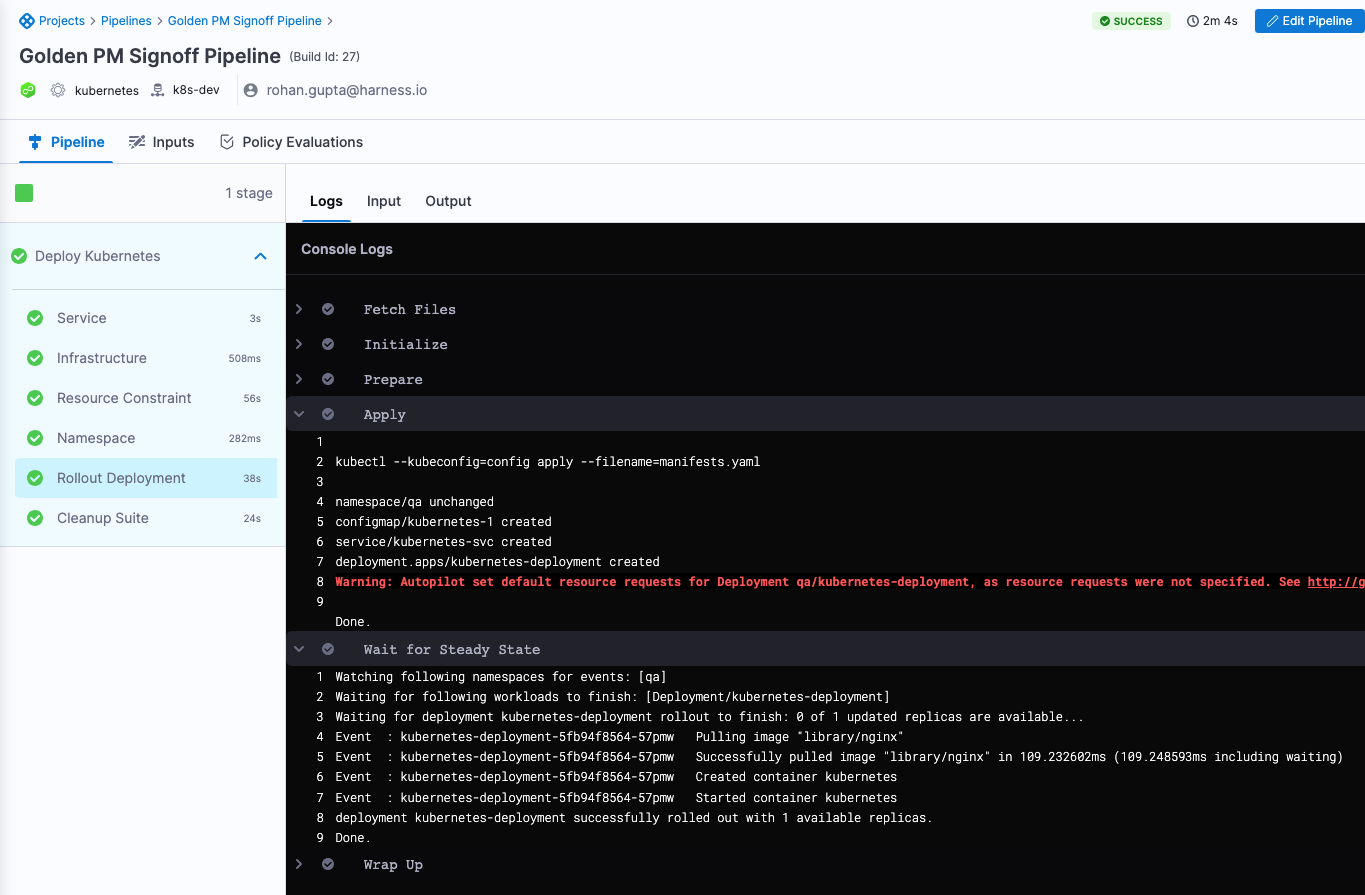 - A Harness CD Deploy stage.