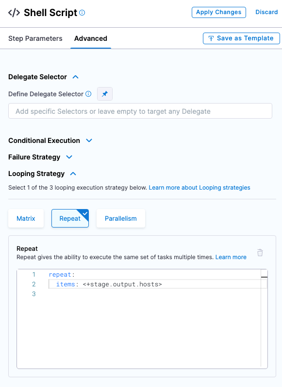 This shell script will be executed at runtime by the Harness Delegate on its host. This should be a shell script you have run on the Delegate host to ensure that the host can connect to your server(s).