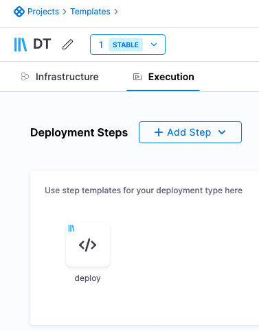• Any steps that you want to use in the stage and associate with this template. If you create these in the Deployment Template, they are automatically created as separate Step Templates.