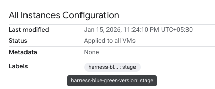 Before running the Blue-Green deployment, you must add labels to your MIGs in GCP. Navigate to your MIG's All Instances Configuration section and add the following labels: