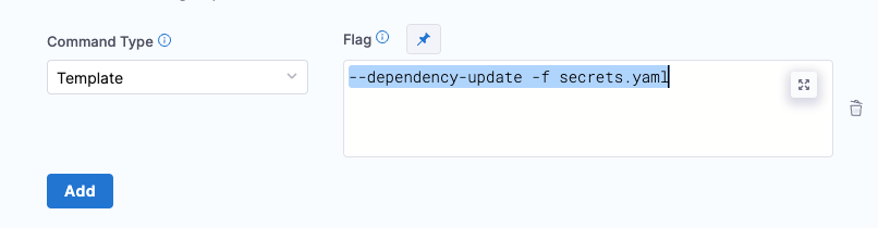 --dependency-update -f secrets.yamlcommand flag in the manifest configuration to resolve the values. Please remember that files submitted through this method take precedence, followed by the override files set in the Harness service. Avoid using encrypted files as overrides as they will replace decrypted values with encrypted ones. An example on how to configure this is shown in the image below: