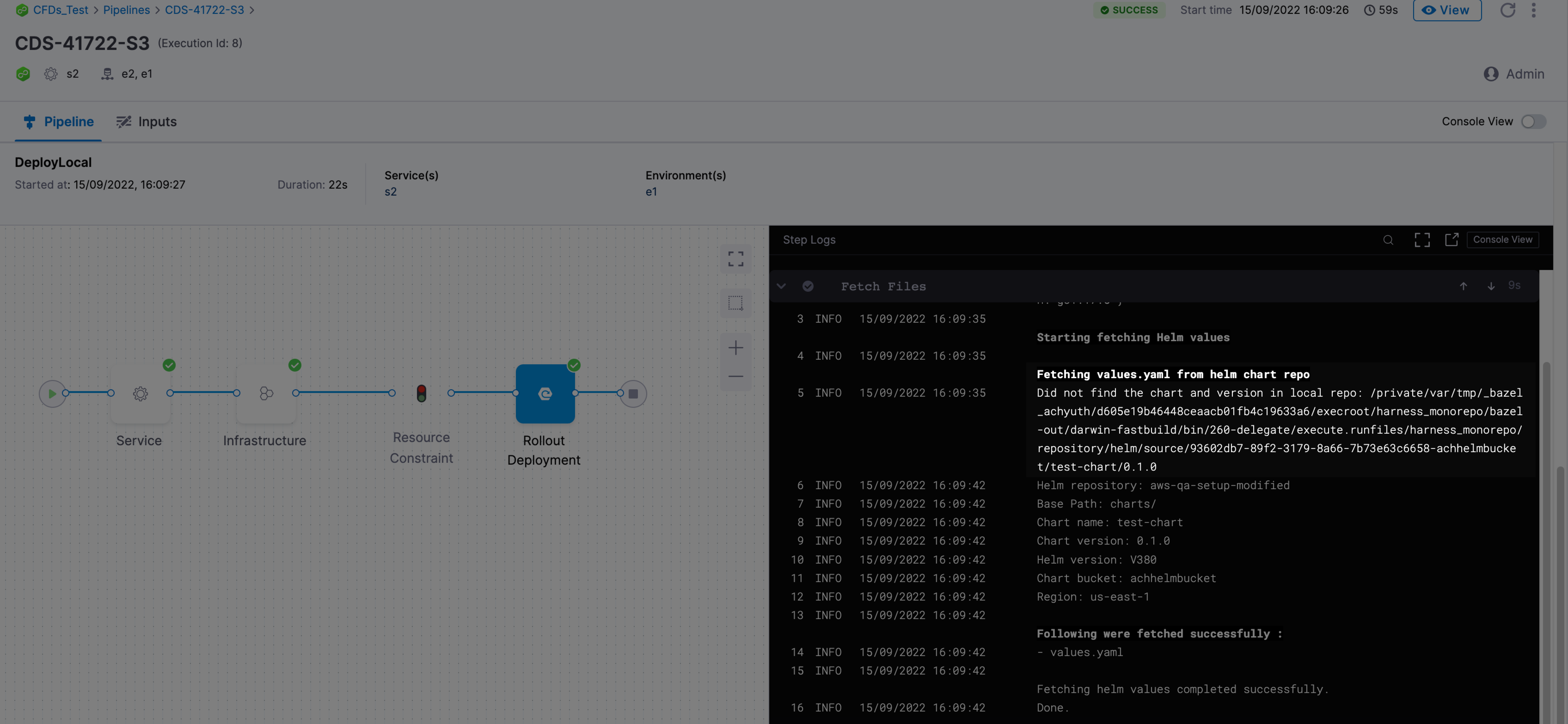 When Harness finds the charts it displays the message Found the chart at local repo at path.
