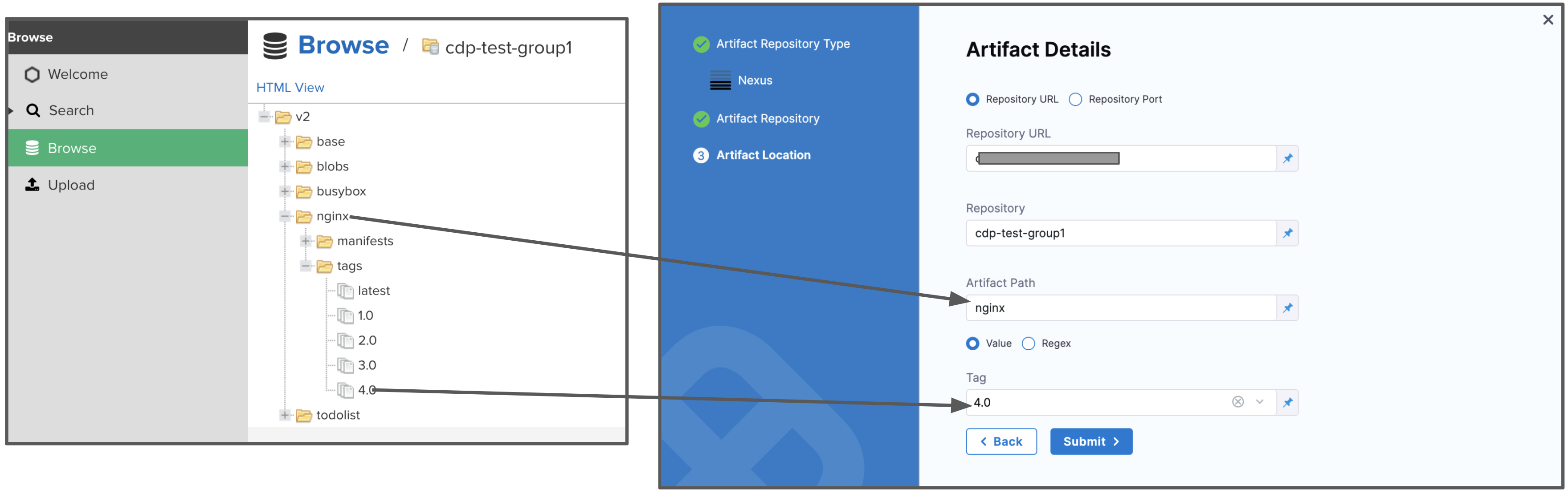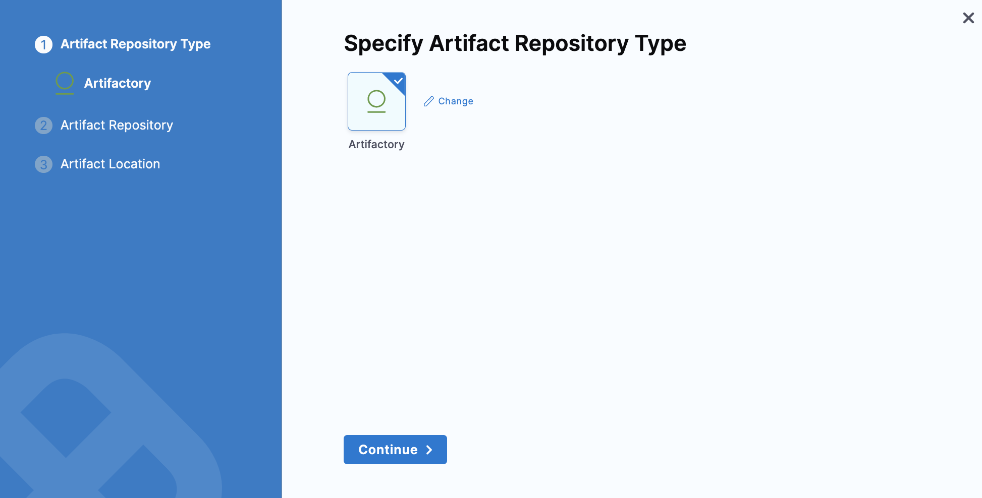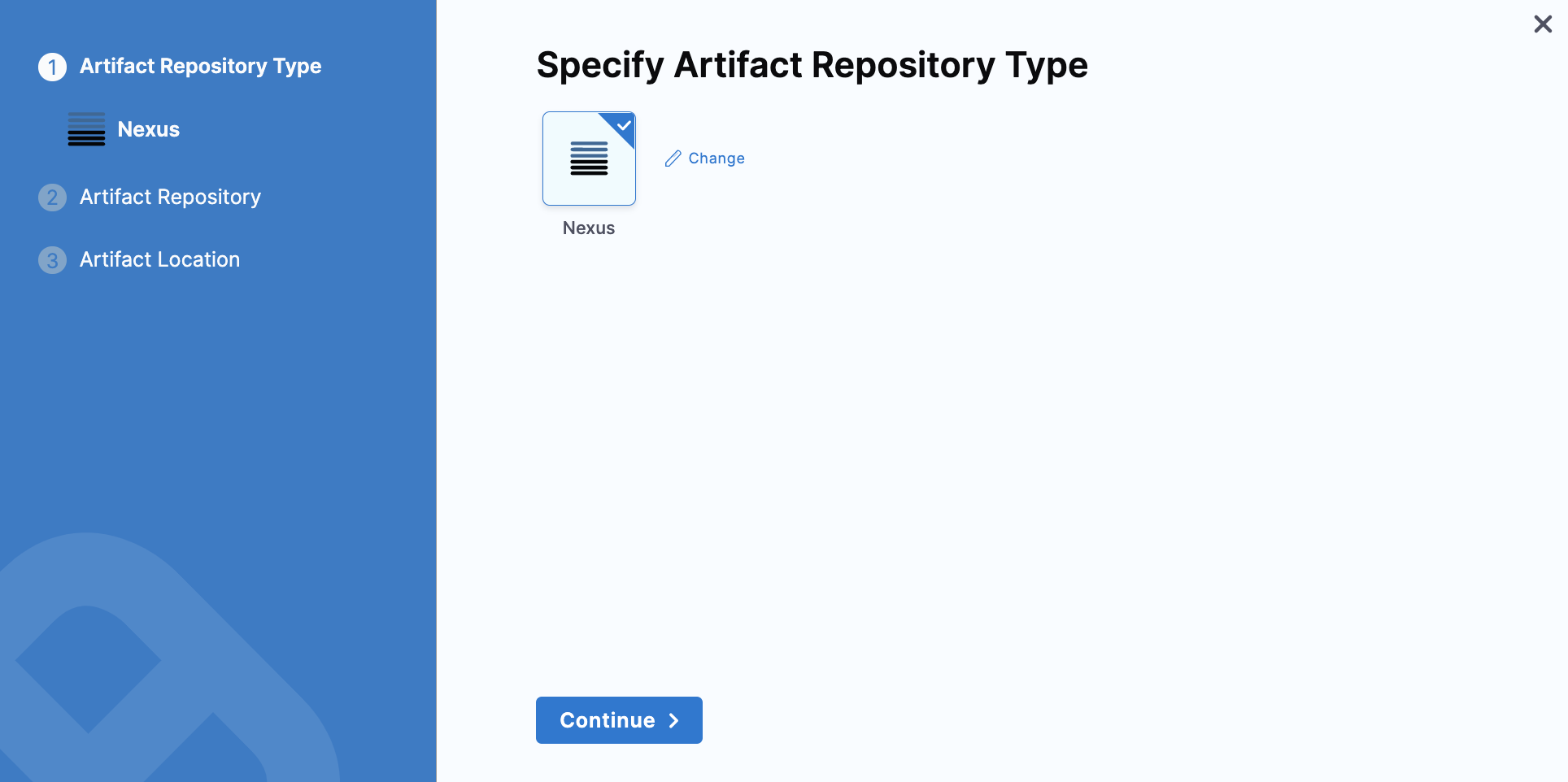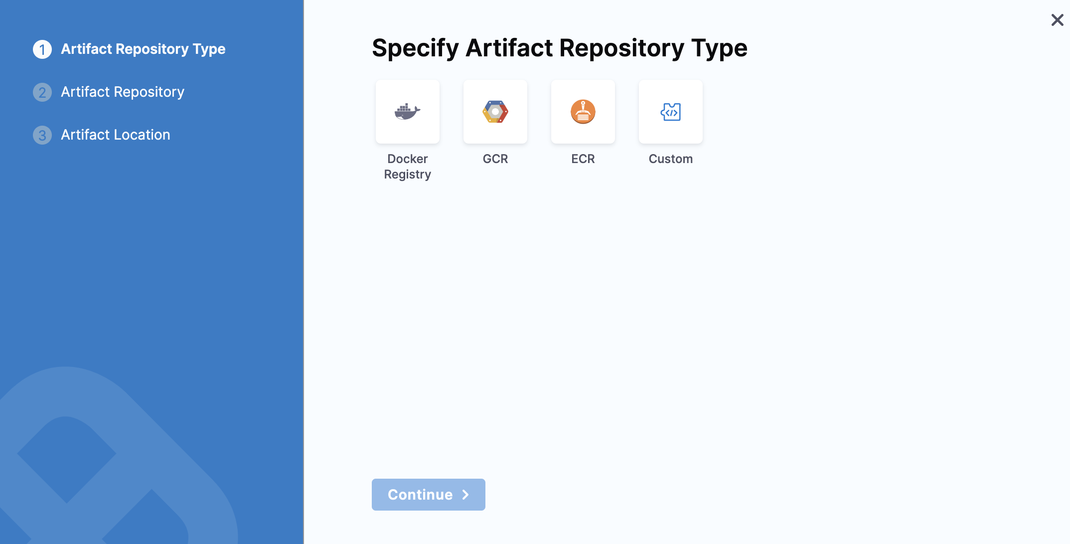 https://registry.hub.docker.com/v2/. To connect to a private Docker registry, usehttps://index.docker.io/v2/.Click Continue. - In Image path, enter the name of the artifact you want to deploy, such as library/nginx.