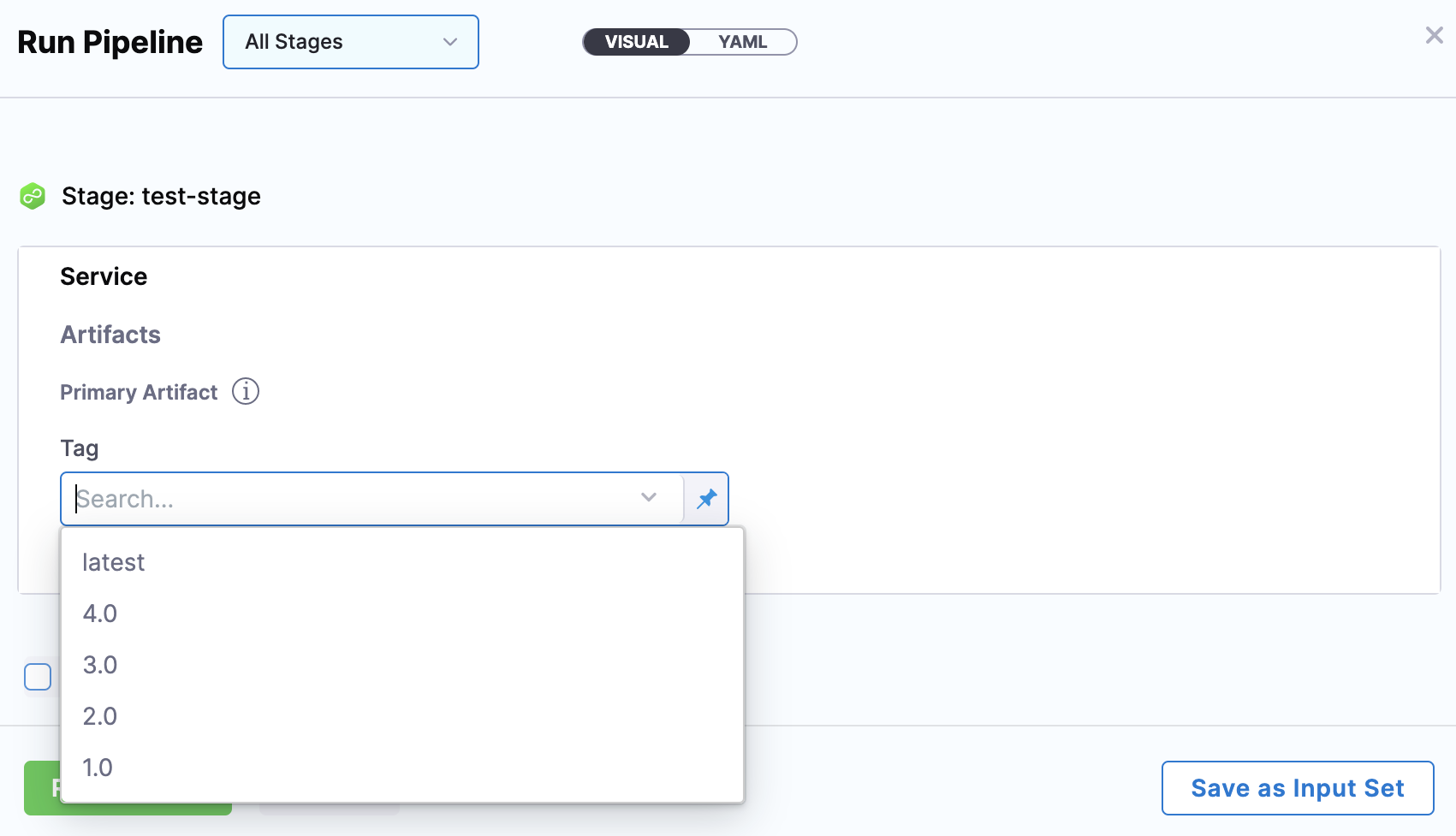 In this scenario, you'll use the Artifacts settings in the Harness Service Definition to identify the artifact to use and select the image and tag in Harness at runtime.