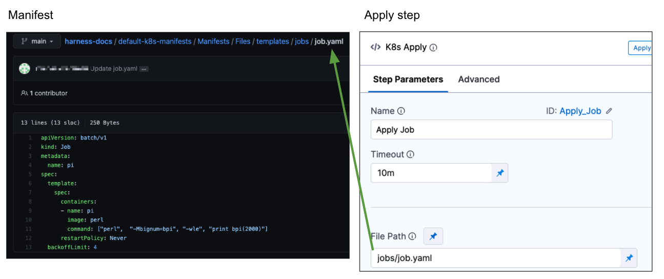 In the Apply Step, in File Path, enter the path to the Job manifest relative to the path entered in the Service Manifests section.