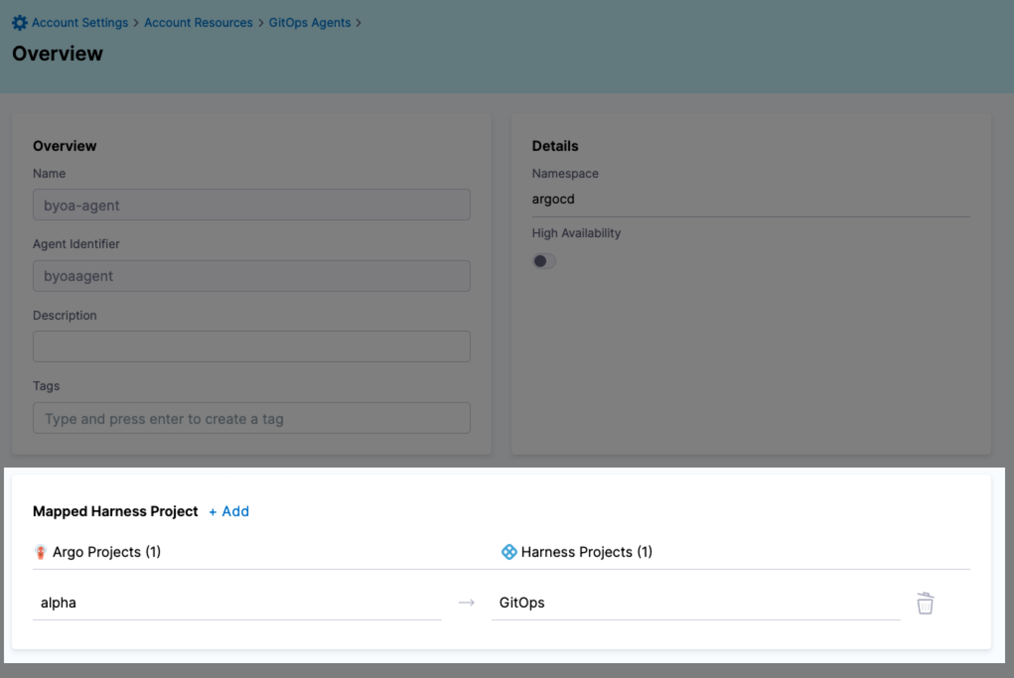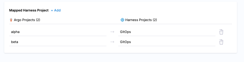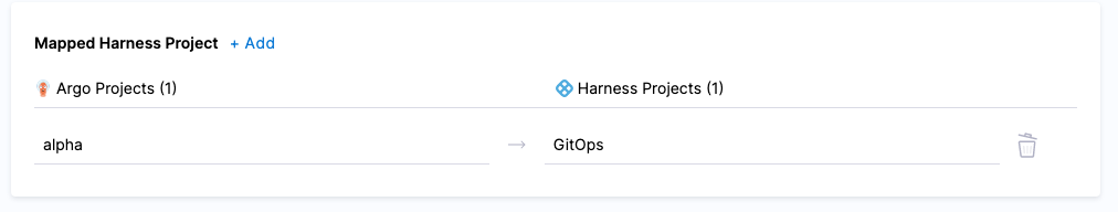 noteDo not map the same Argo CD project to multiple Harness projects.