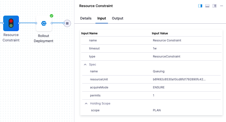 You can also view the number of deployments that are queued, and access their execution links by hovering over the Resource Constraint step.