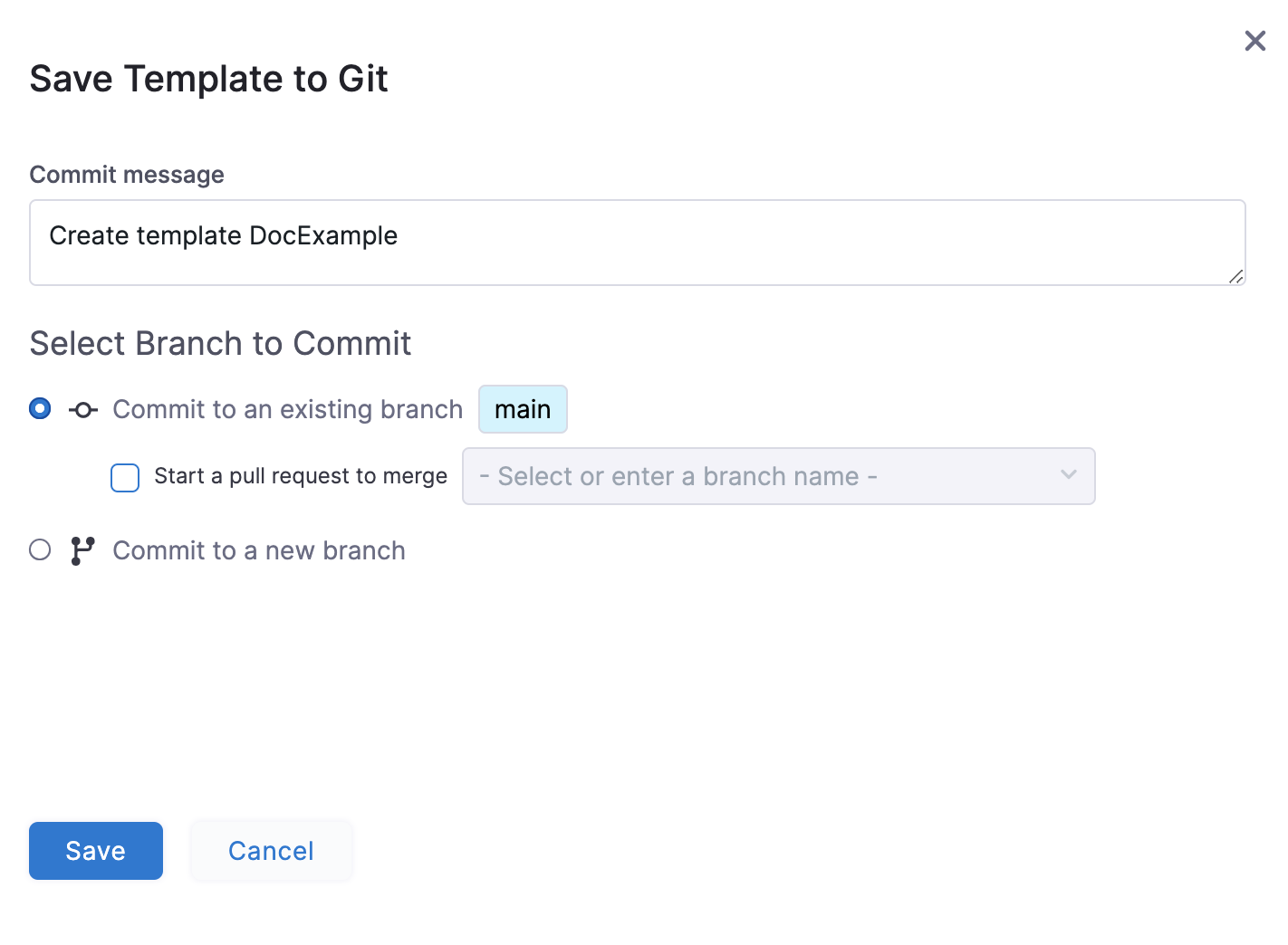 For more information, see Using Shell Scripts in CD Stages. - Click Save. The Save Template to Git settings appear.