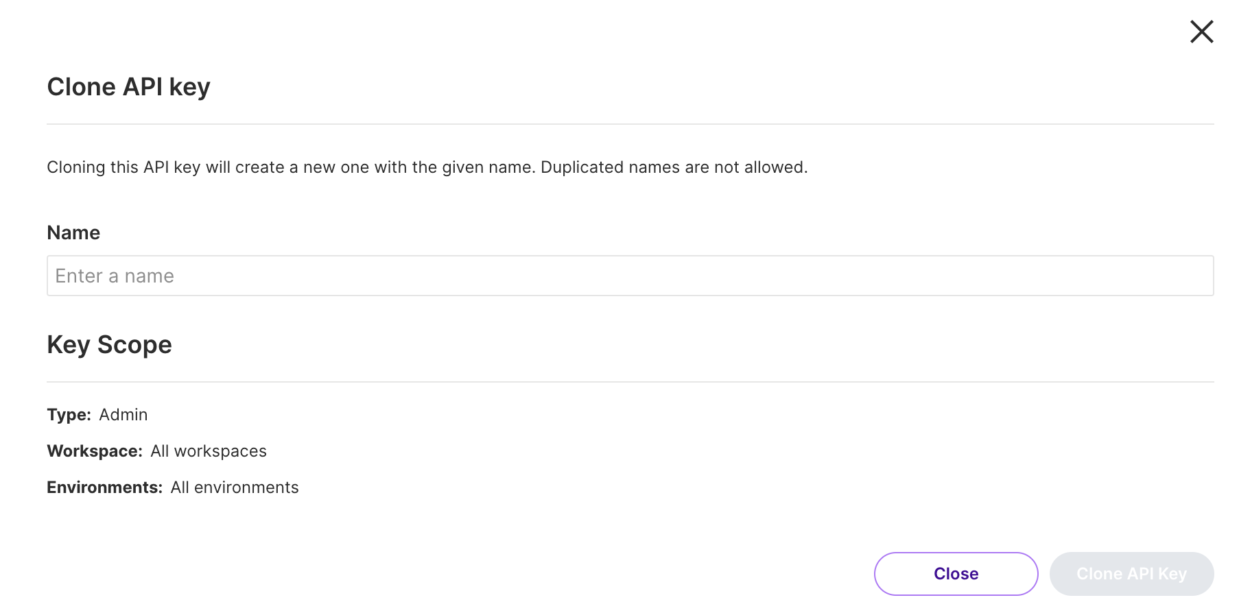 5. Enter a Name for the API key. Description and Tags are optional.