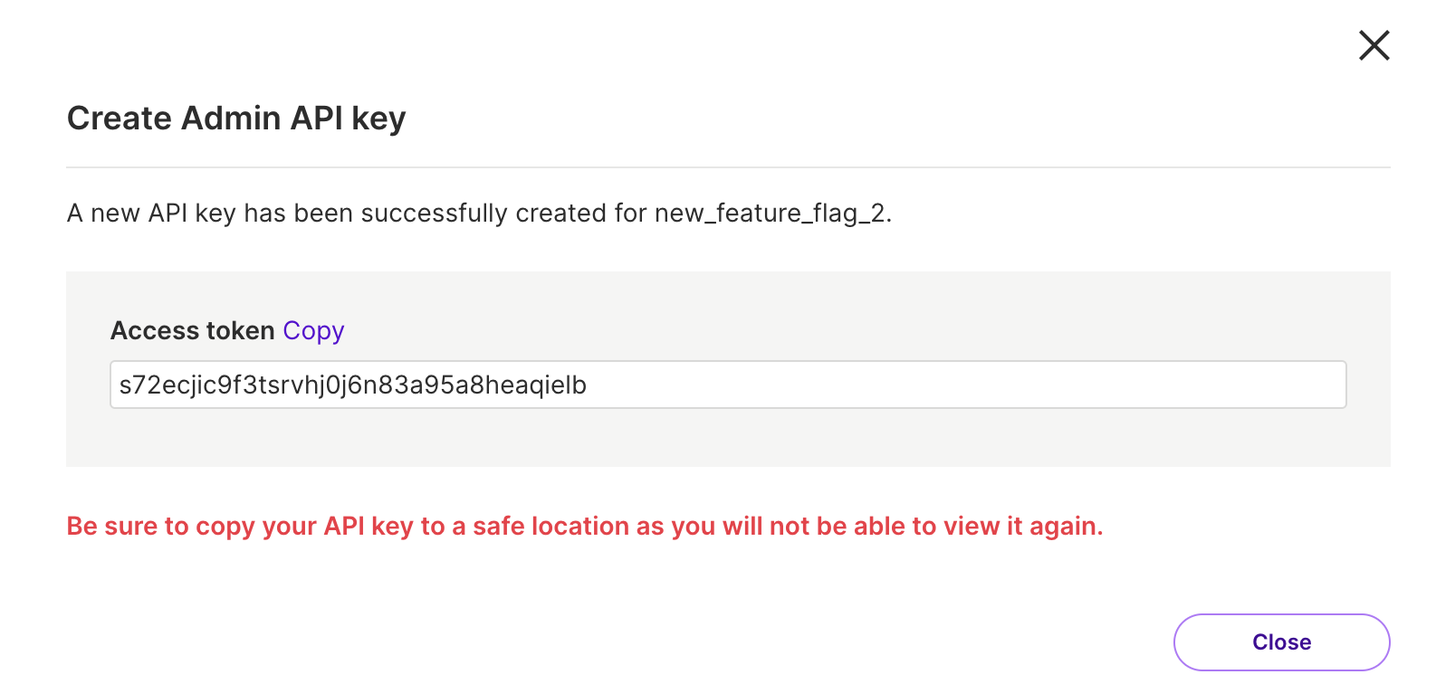 6. Select Save to create the API key.