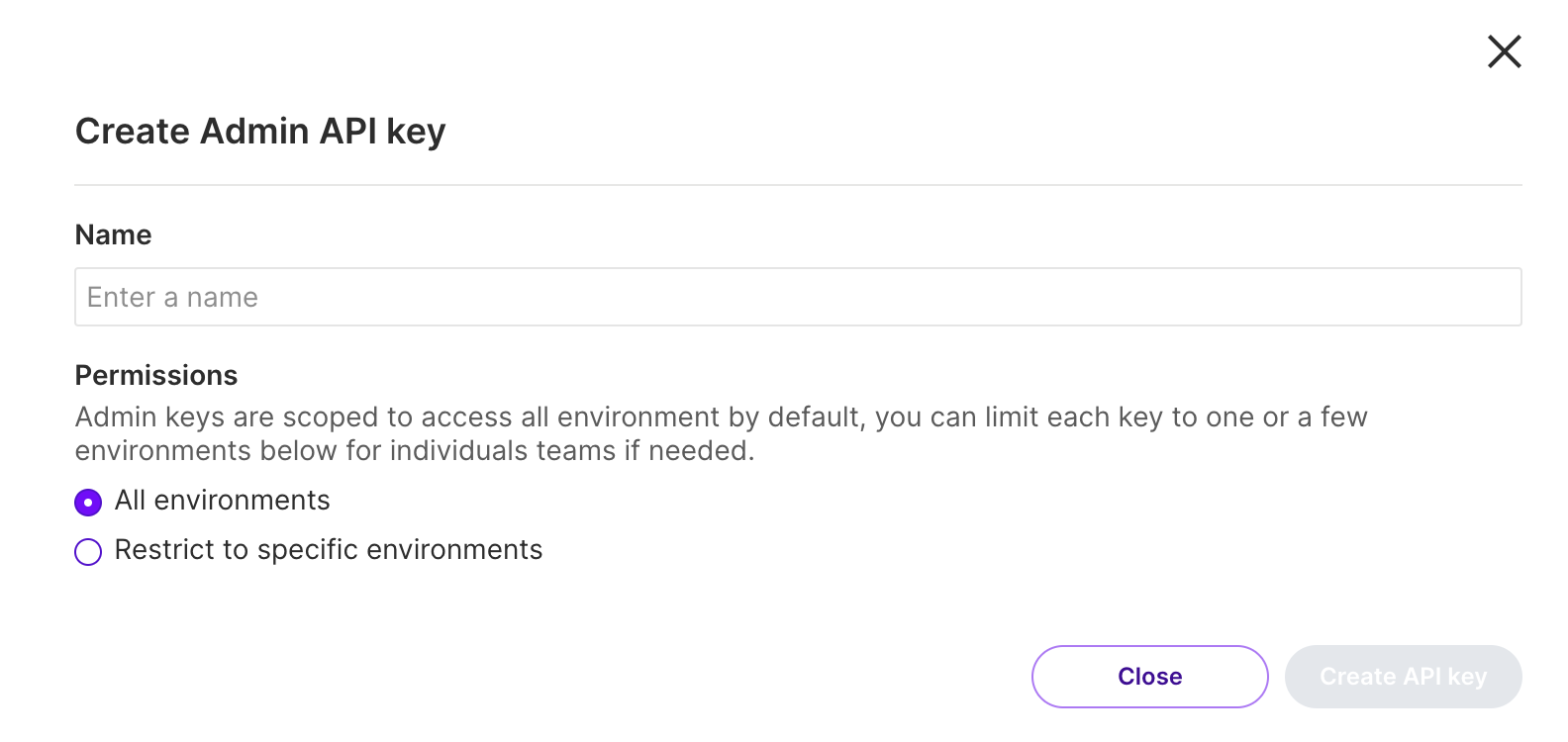 4. Enter a name for the SDK API key.