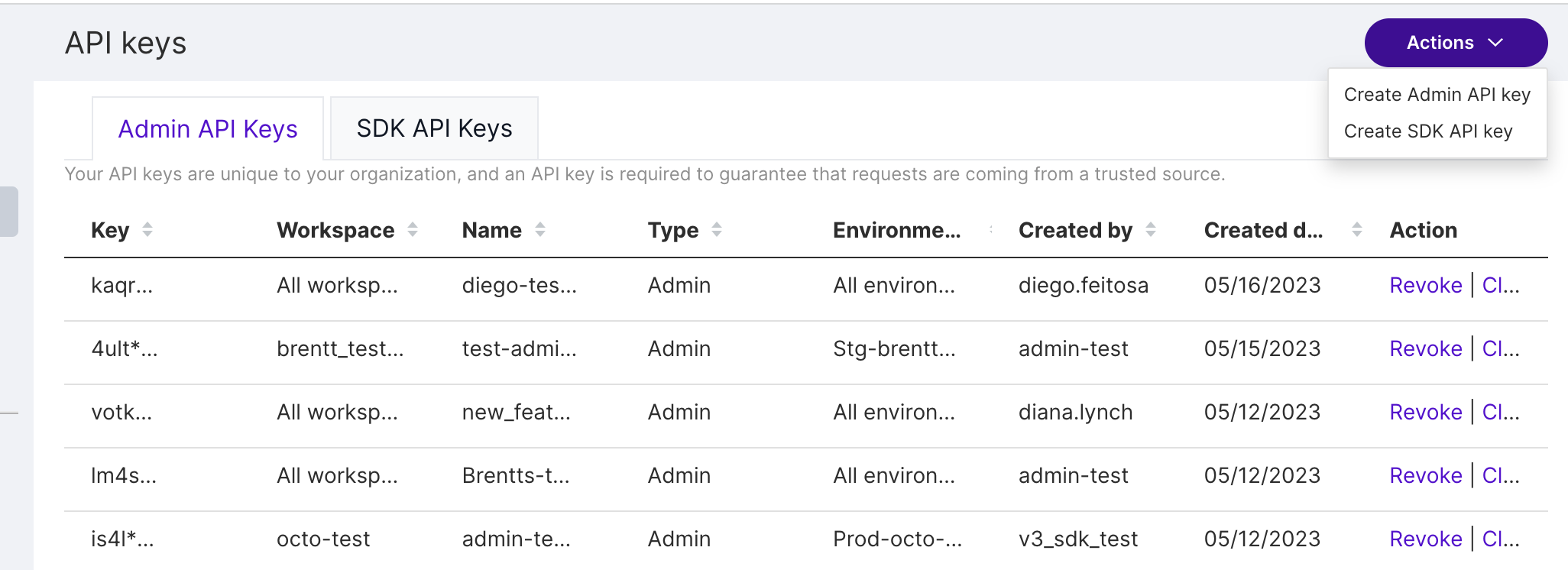 Delete API keys