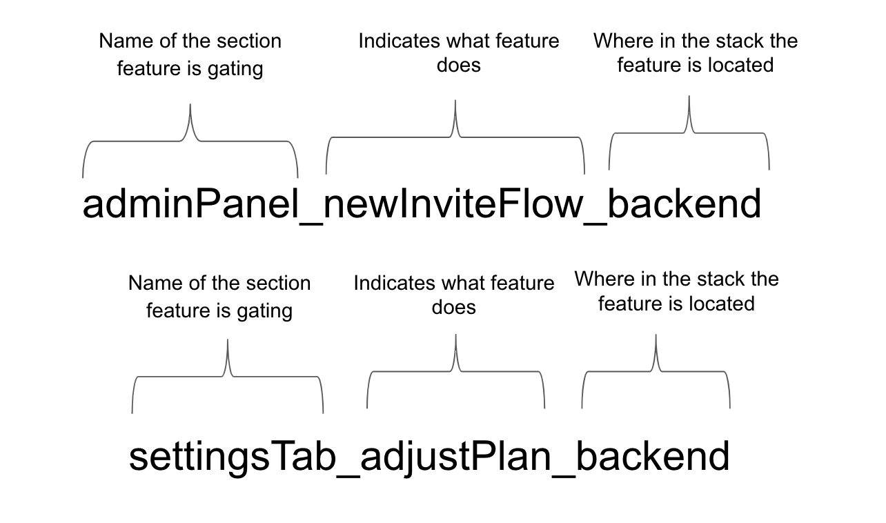 When creating a feature flag (or segment or metric for that matter), it's a good idea to create a convention that your team can follow. Your approach will be specific to your organization, of course. Below are some suggestions based on conventions we use internally: