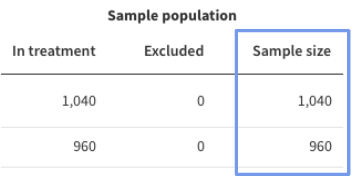For example, imagine you see the below table for a feature flag that ran for a full week, to get the estimated sample size per day, first sum the sample sizes across the two treatments, to get 2000, then divide by 7 to get an estimated daily value of 285 users.