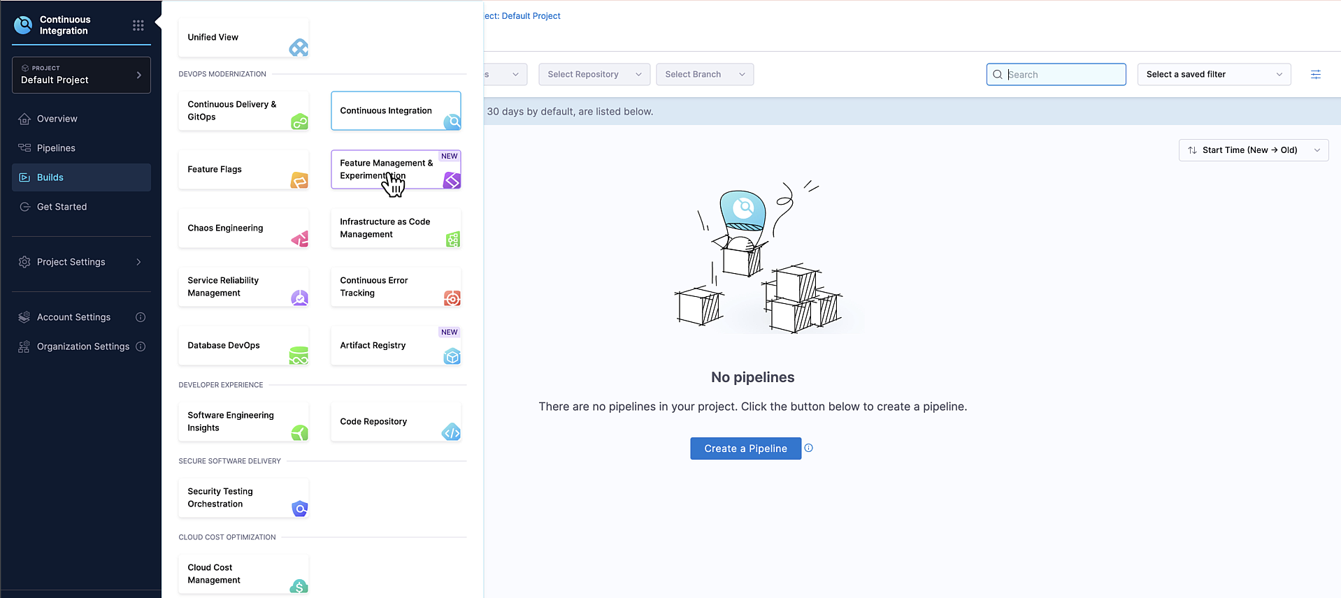 DevOps Modernization. You are redirected to the Harness FME module landing page.