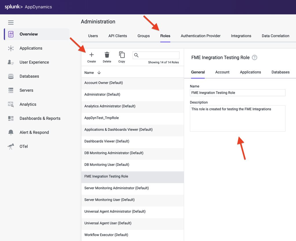 To connect Harness FME to Splunk AppDynamics, create an Administrator role and a user within that role.