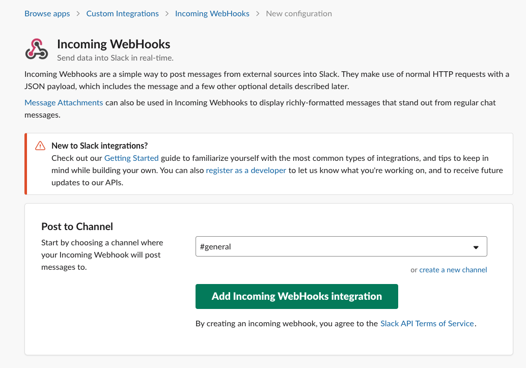 Select a channel where you would like the notifications from Harness FME displayed and click the Add Incoming WebHooks integration button.