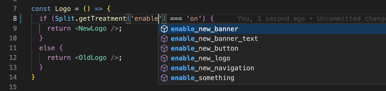 Automatic completion. When you start typing a string, a list of matching feature flags names automatically appears.
