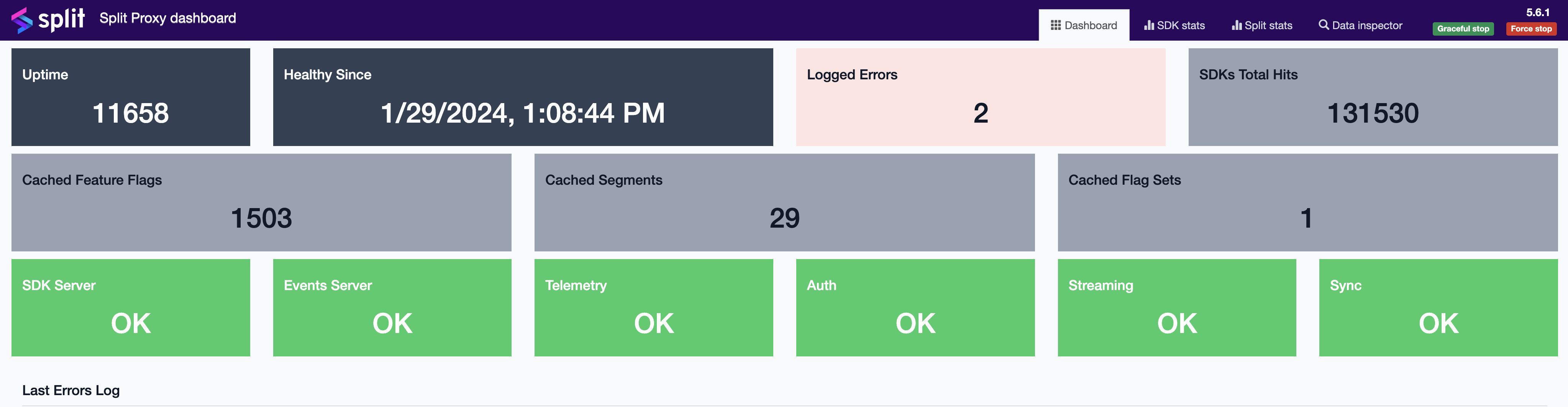 The split-proxy service has a set of endpoints and a dashboard that lets the DevOps and infra team monitor its status and cached data in real-time. By default, the port is 3010 and for security reason, it supports HTTP Basic Authentication configured by the user.