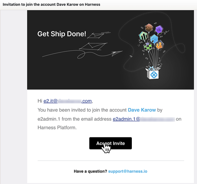 Your colleague will receive an email from Harness <noreply@harness.io> similar to this one: