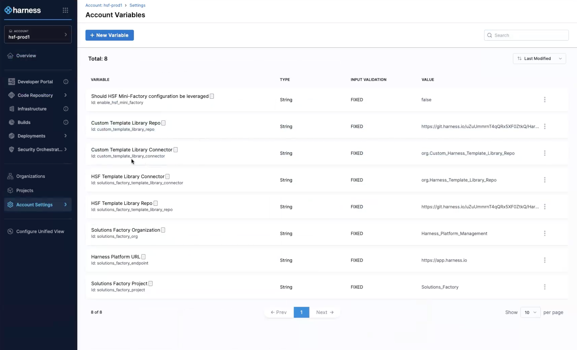 - In the Harness Console go into Account Settings → Variables → Find and copy the Ids for