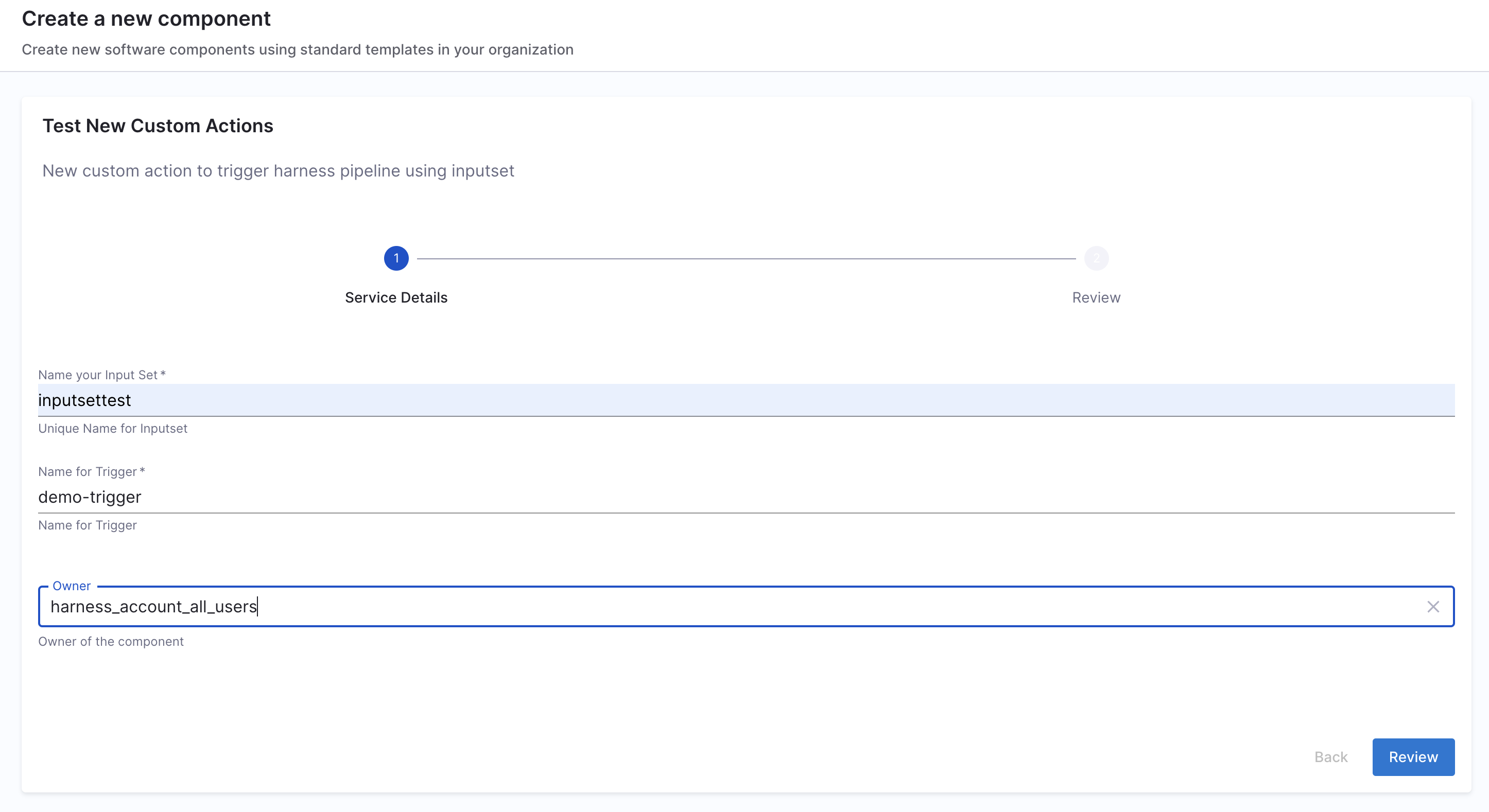 The token property used to fetch the Harness Auth Token is hidden on the Review Step using ui:widget: password. However, for this to function correctly in a multi-page workflow, the token property must be included under the first page.