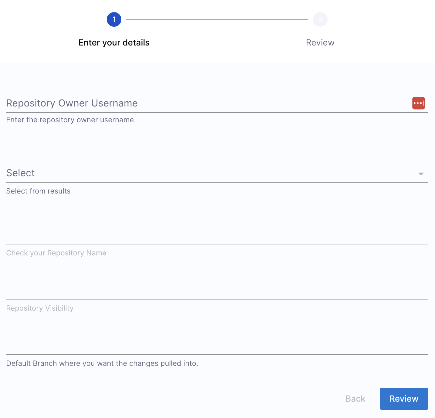 - Repository Branch: Origin Branch of the repository, Auto-fetched, but editable.