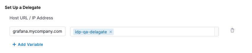 If your Grafana instance is self-hosted or has an IP address allowlist, include the base URL grafana.mycompany.com in the delegate proxy section.