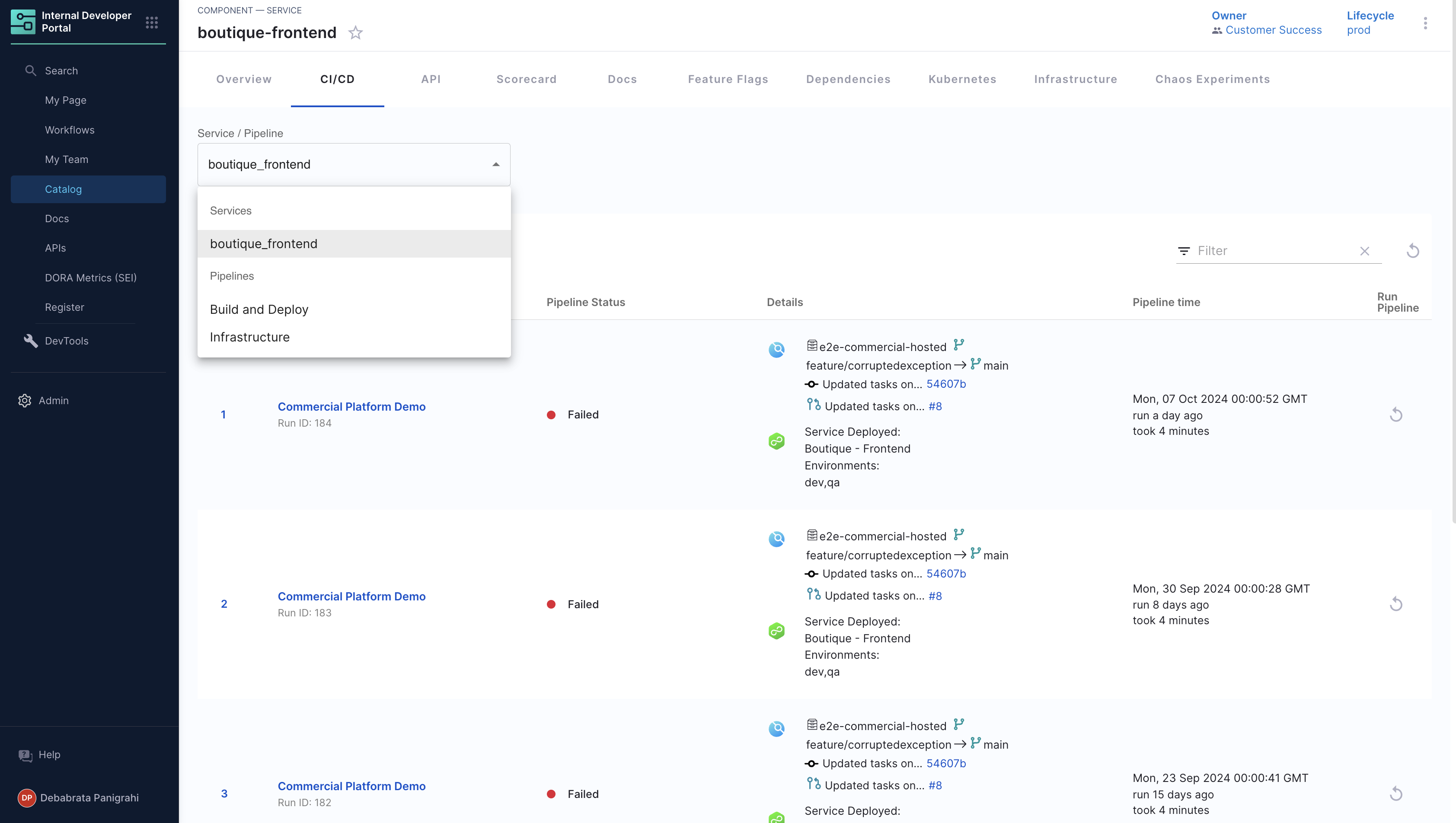 This plugin exports a UI tab that you can use as a new CI/CD tab for a service or for any other layout page. Go to Admin > Layout, select Service in the dropdown menu, and then add the following YAML code in the CI/CD section: