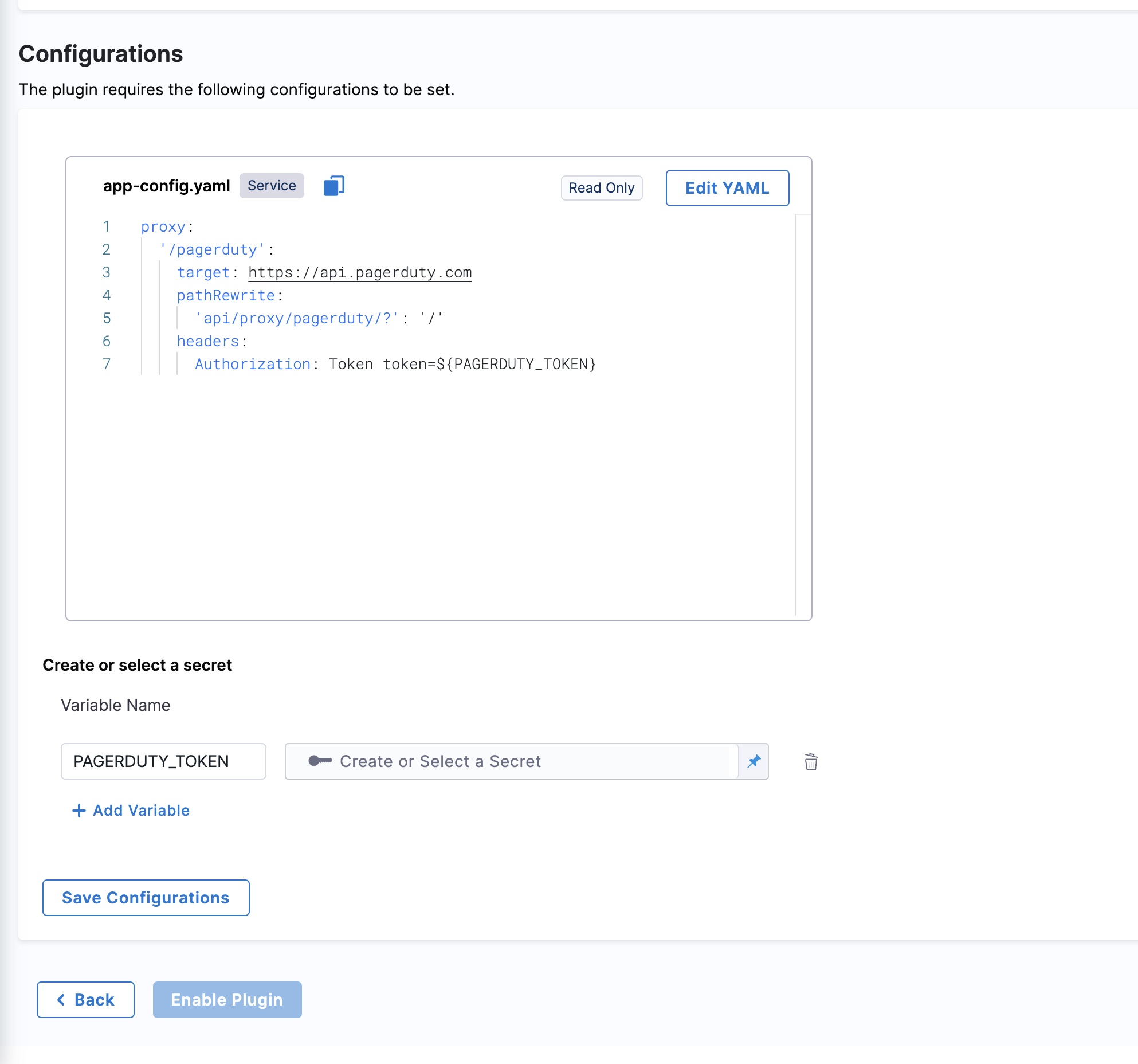 After verifying all the configurations and secret details, save the configuration. If the configuration YAML is valid, the plugin configuration is saved. Otherwise, appropriate messages are displayed.