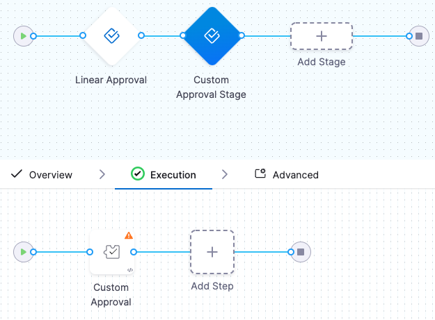 If you were adding a Custom Approval step to a different type of stage, you would simply click Add Step in that stage's Execution and select Custom Approval.