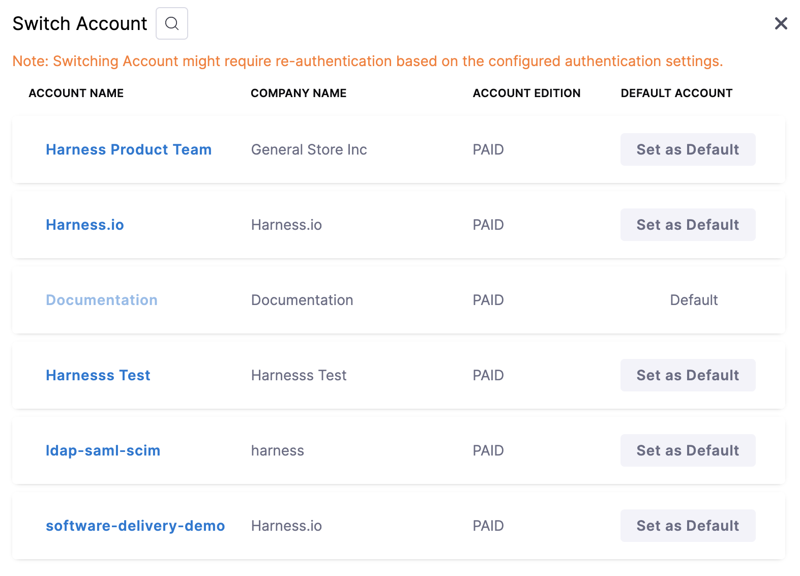 | Authentication Setting of Current Account | Authentication Setting of the switch Account | Need to Re-authenticate |