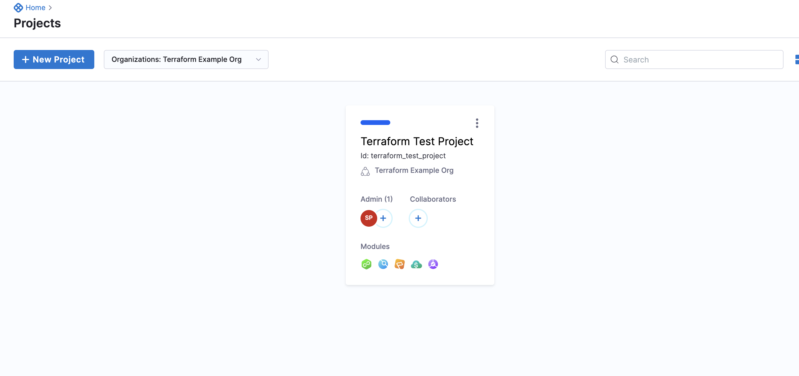 Your Project now appears in the list of Projects within the scope of your Organization.