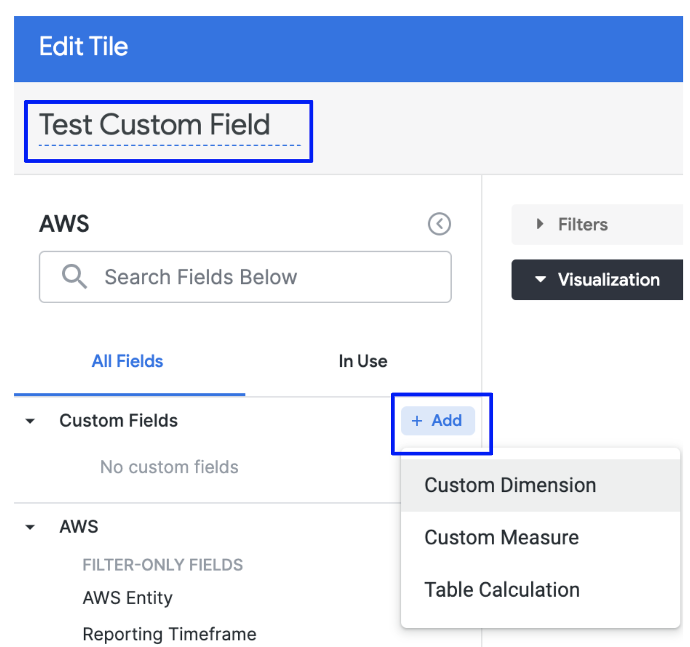 Dashboards provide the flexibility to add custom fields to the query. Using custom fields you can build new ad hoc custom dimensions and measures in Explore. Adding custom fields to the query allows to gain deeper insights into your data.