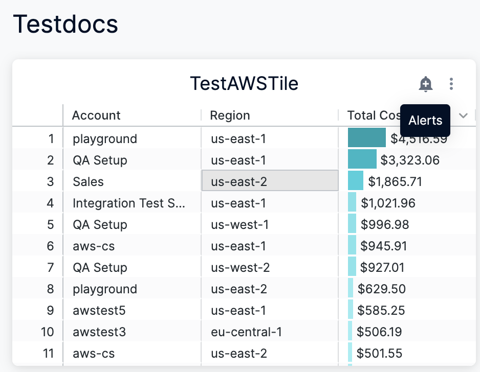 - Hover over the bell icon that appears on the dashboard tile. A numeric indicator shows how many alerts you have created for that tile.