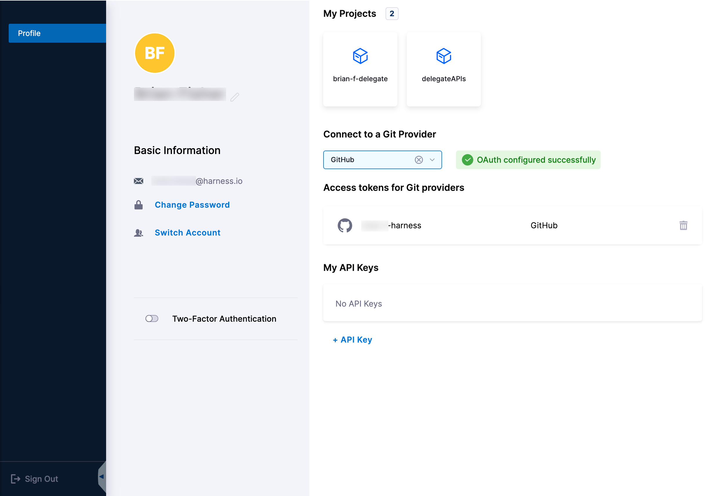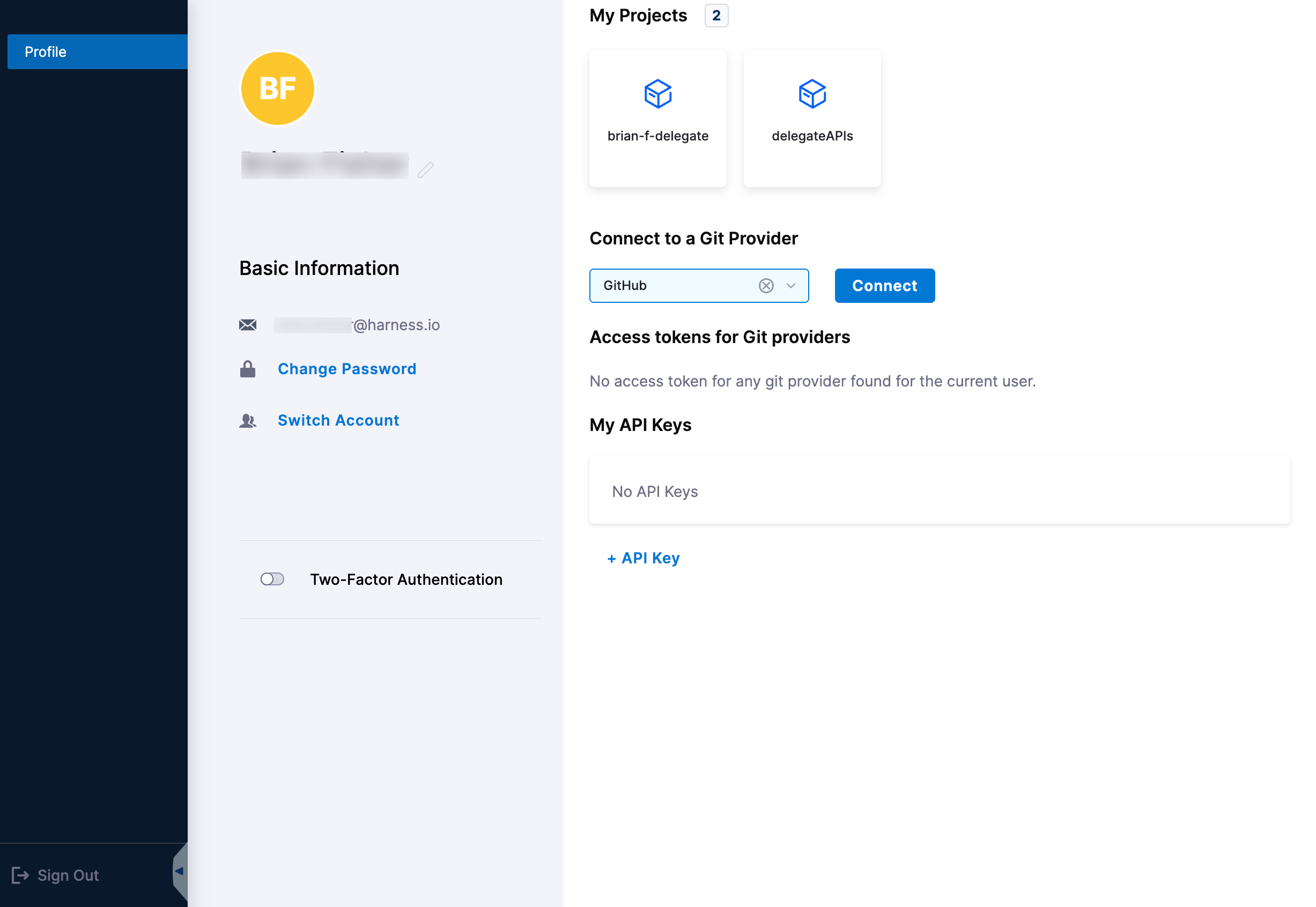- Go to your user profile in Harness.