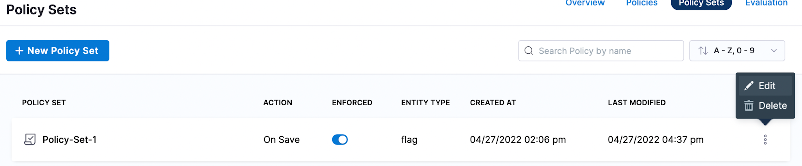 - The Policy Set is automatically set to Enforced, to make it unenforced, toggle off the Enforced button.