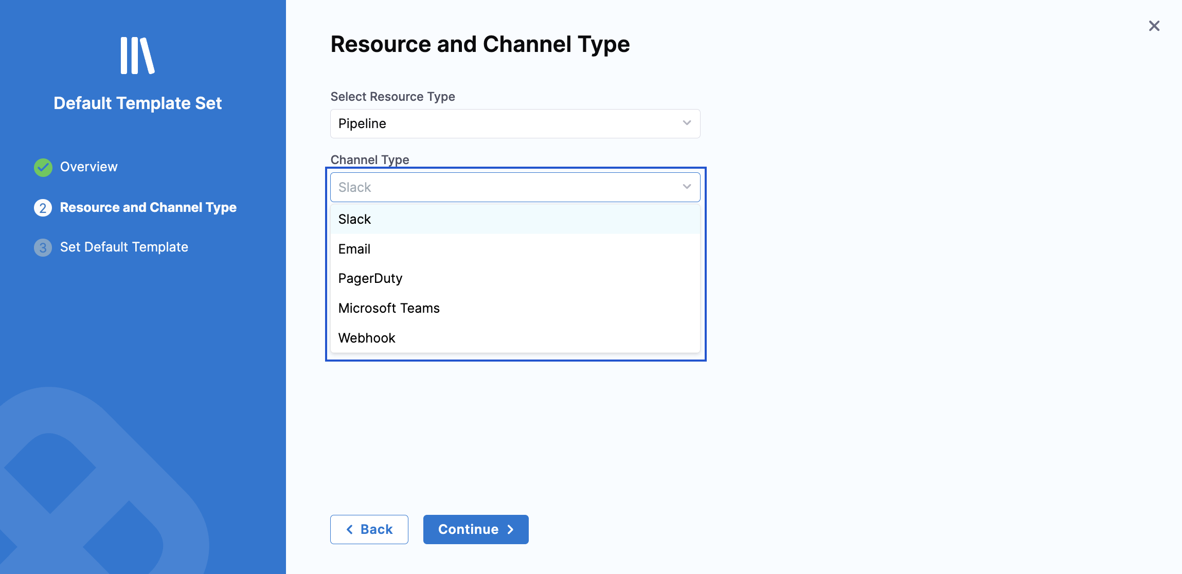 Channel Type: Select one from the dropdown. Click Continue to proceed.