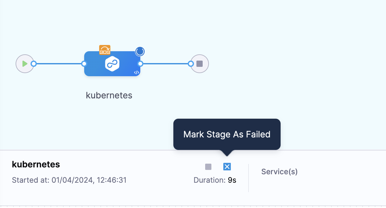 - If there is only one stage running when you mark either the stage or pipeline as failed, both options have the same impact.