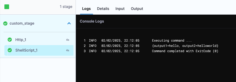 "logBaseKey": "accountId:ACCOUNT_ID/orgId:ORG_ID/projectId:PROJECT_ID/pipelineId:output_variable/runSequence:1/level0:pipeline/level1:stages/level2:custom_stage/level3:spec/level4:execution/level5:steps/level6:ShellScript_2"