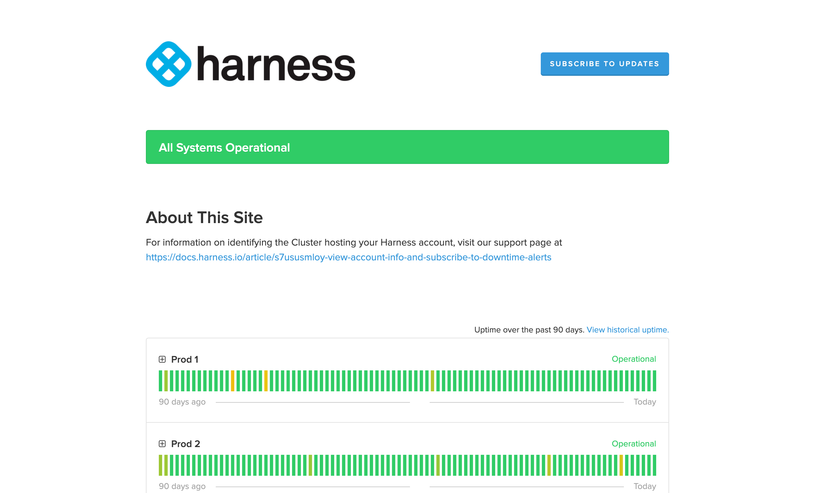 Harness provides a summary of your account information and enables you to subscribe to downtime alerts for the SaaS cluster hosting your Harness account.
