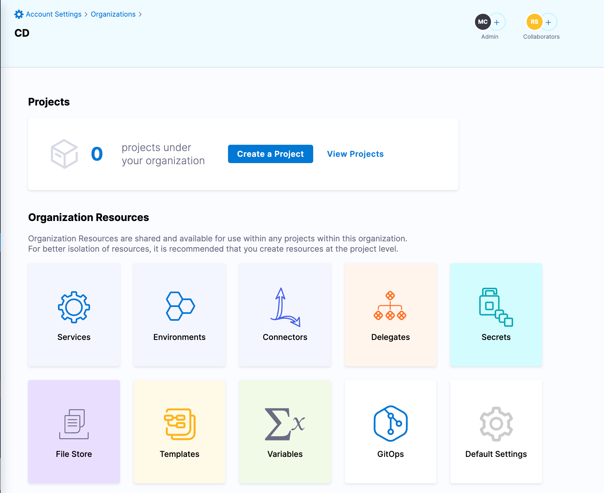 In Harness, select Account Settings.