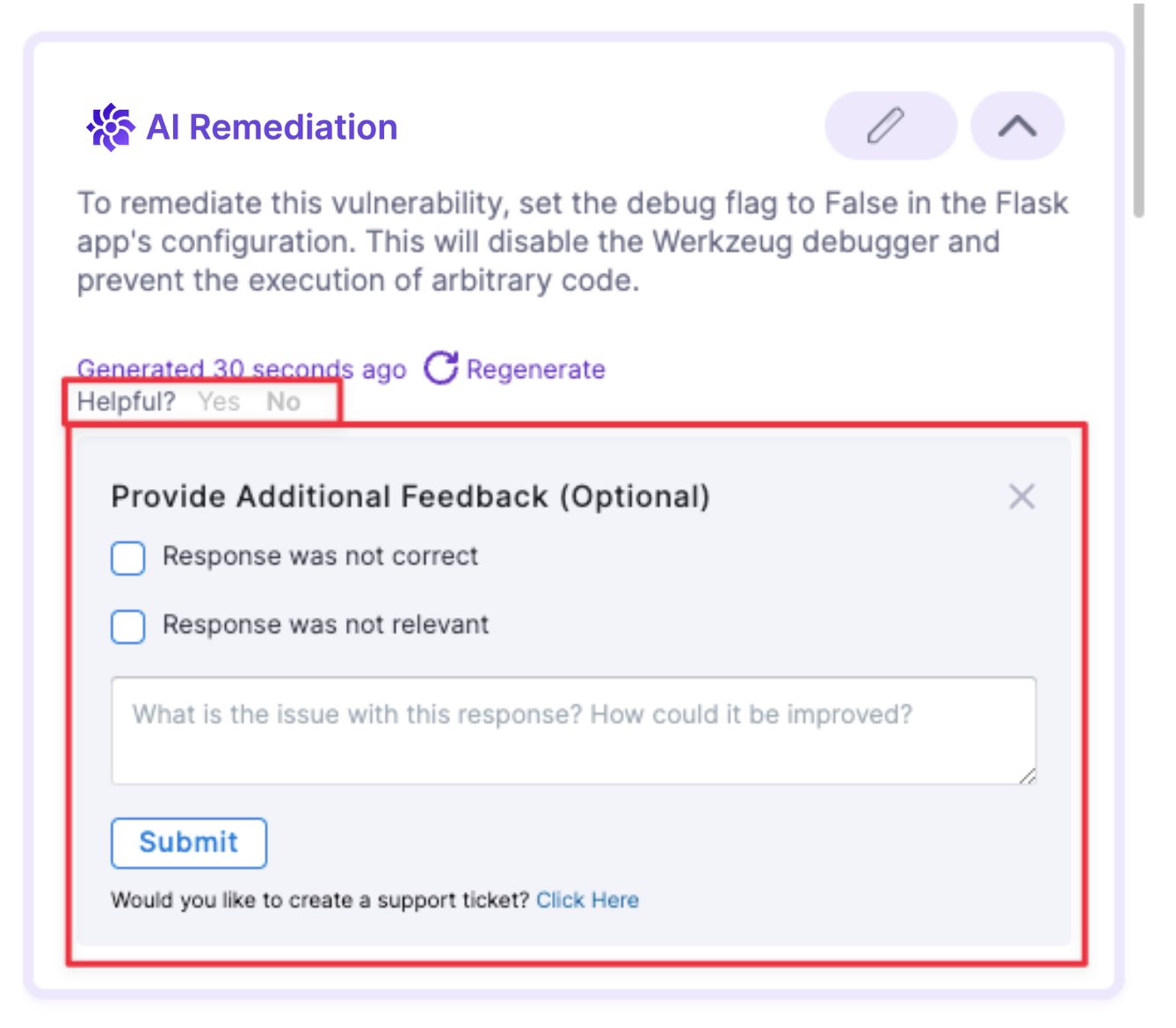 - Edit Remediation: You can modify the AI suggestions and regenerate improved, context-specific advice tailored to the issue.