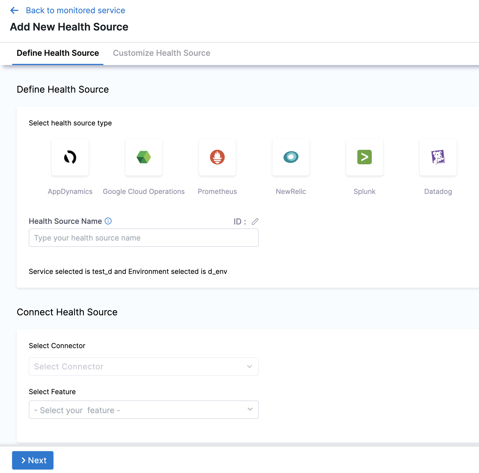 Click Next and the Customize Health Source settings appear.