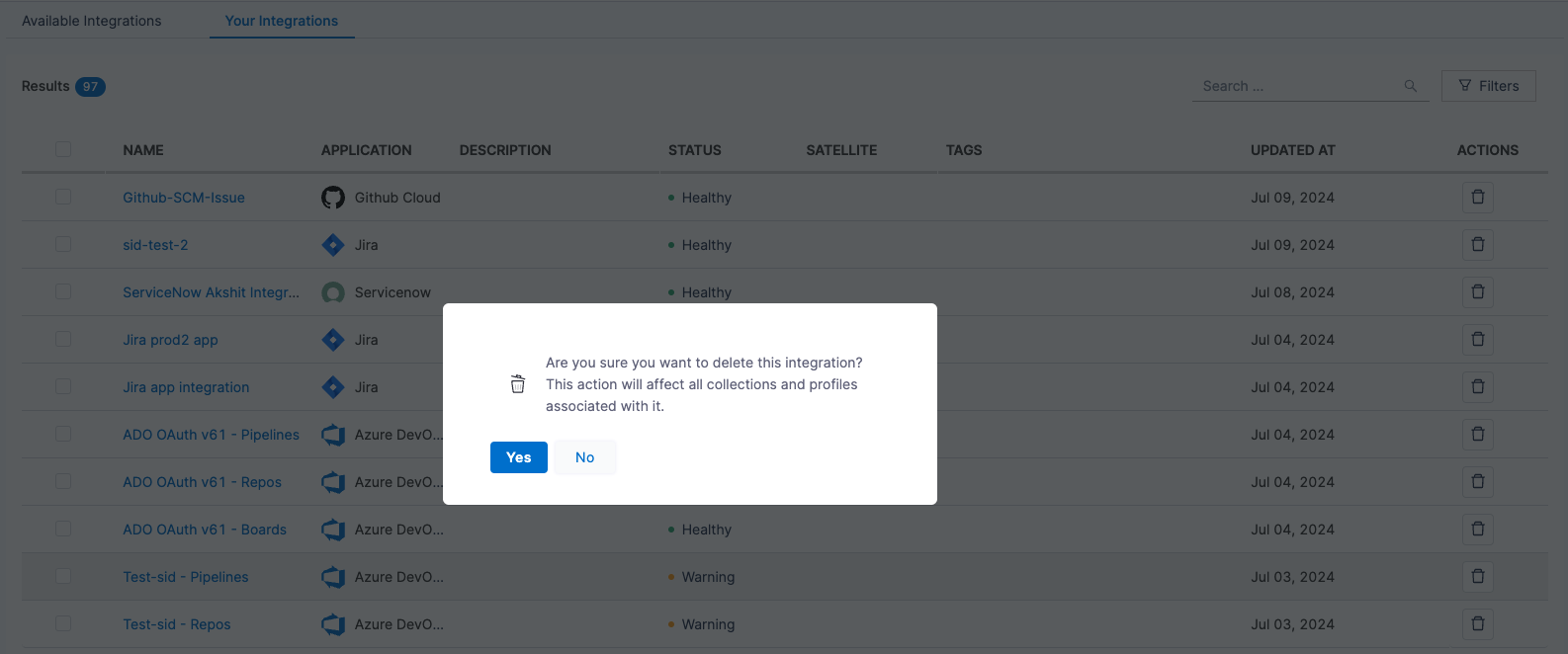 Deleting an integration will impact all collections and profiles associated with it.